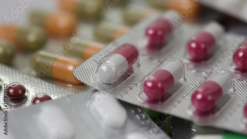 Closeup shot of moving pile of medicine with big pills on top