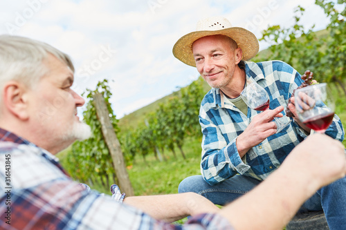 Erntehelfer tragen eine Kiste mit Weintrauben