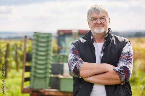 Erntehelfer tragen eine Kiste mit Weintrauben