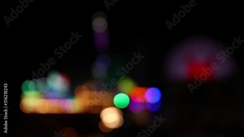 Defocsued shot of fairground at night with blurry lights