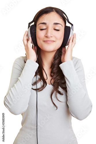 Junge Frau hört Musik über Kopfhörer