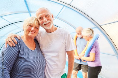 Paar Senioren mit Schwimmnudel bei Gesundheitssport