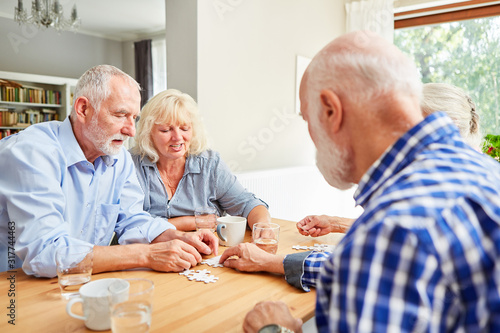 Senioren als Rentner beim Puzzle spielen