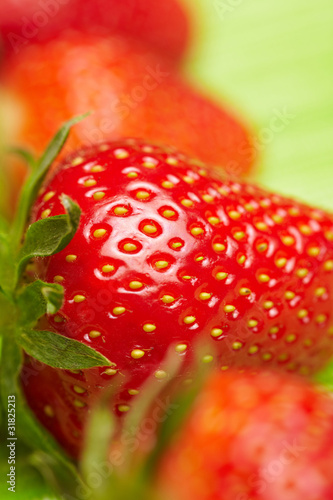 Rote Erdbeere auf grüner Decke