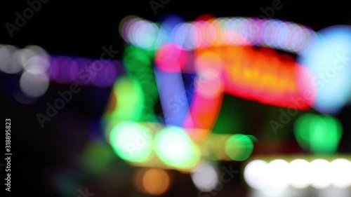 Defokussierte Lichter auf Jahrmarkt oder Kirmes abends