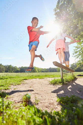 Children balancing in the summer in the park