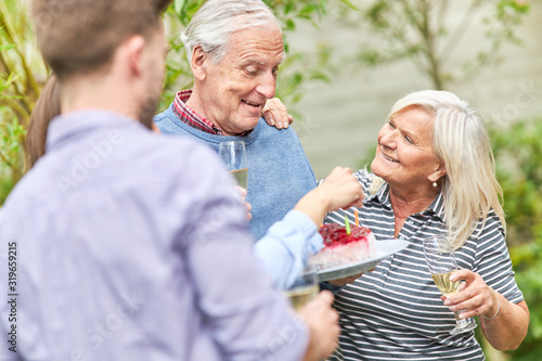 Seniorin schneidet ein Stück Kuchen beim Kaffeetrinken