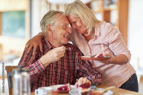 Senioren Paar beim Kaffee trinken mit Kuchen