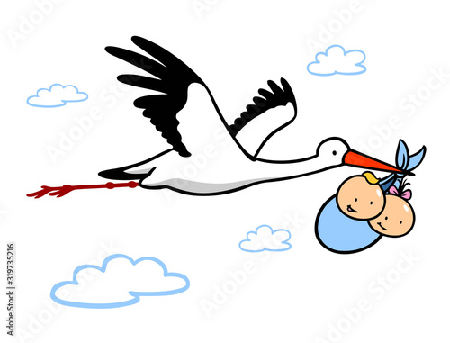 Clipart von Storch mit Baby Zwillingen zur Geburt