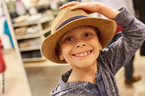 Adorable young child dressed as a cheerful farmer in a straw hat and overalls posing against a bright turquoise background.