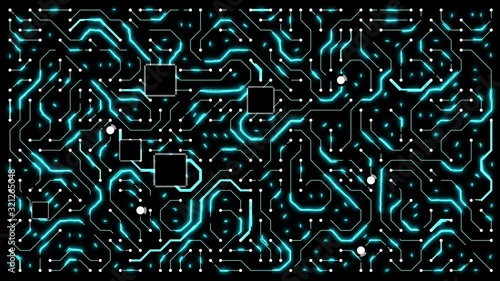 Glowing circuit board emerging with glowing lines