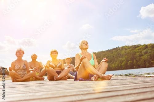Gruppe Senioren bei Physiotherapie auf Bosu Ball