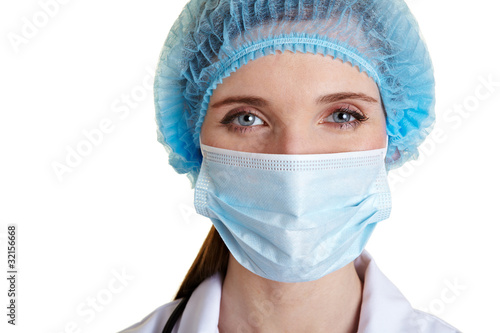 Gestresste Pflegekraft oder OP-Schwester nach Operation