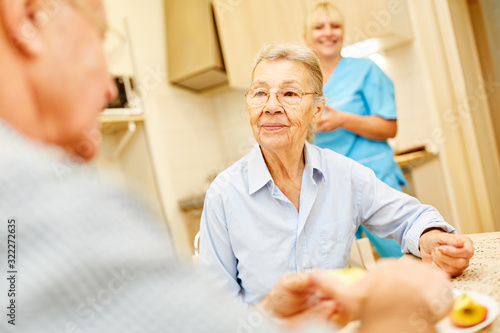 Nursing wife and senior citizen while cooking