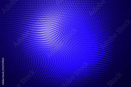 Wavy blue halftone pattern creating a flowing digital landscape with dotted grid on a blue background