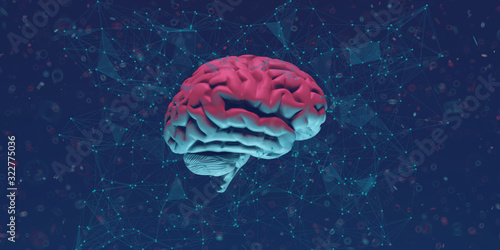 Colorful abstract 3D brain illustration with a pink and blue gradient