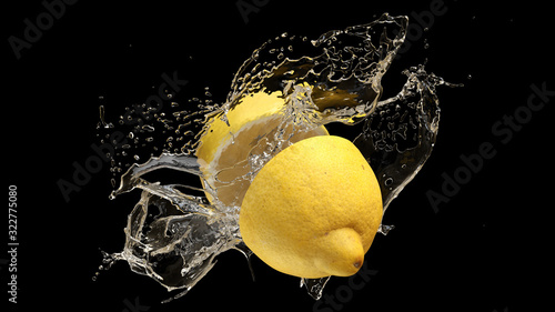 Zwei Hälfte Zitrone mit einem Spritzer Wasser