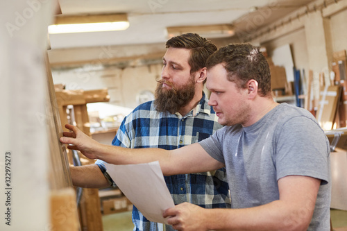 Tischler Ausbilder und Lehrling in der Tischlerei