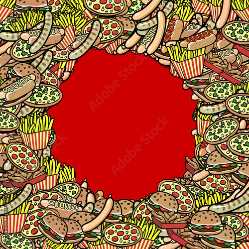 Cartoon Fast Food Hintergrund mit rundem Rahmen