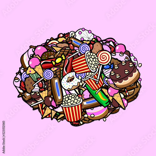 Haufen Cartoon Süßigkeiten und Süßwaren