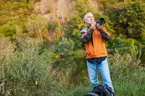 Älterer Fotograf als Landschaftsfotograf in der Natur
