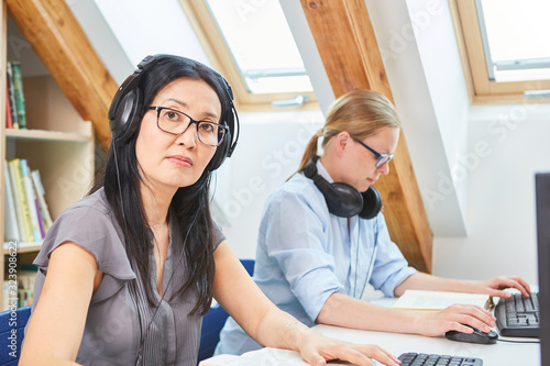 Junge asiatische Frau beim E-Learning Sprachkurs