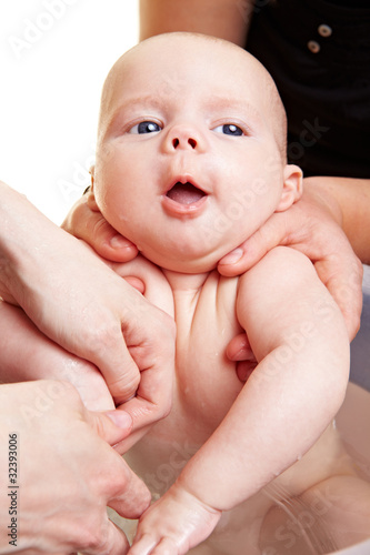 Baby nuckelt an Spielzeugkette