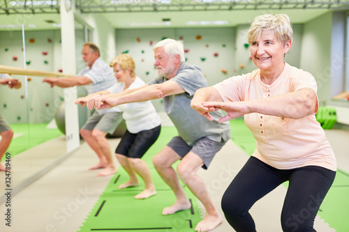 Senioren Gruppe macht Krankengymnastik in der Reha