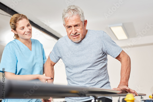 Therapeutin bei Betreuung alter Frau mit Gehgestell