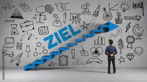 Ziel und Planung Konzept mit Geschäftsmann und Treppe