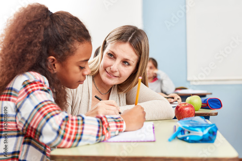 Frau als Lehrer gibt Schülerin Nachhilfe