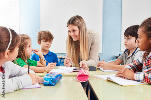 Multikulturelle Kinder in Schulklasse einer Grundschule
