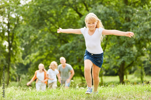 Familie zeigt bunte Zeichnung mit Eigenheim