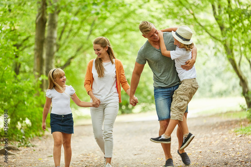 Familie zeigt bunte Zeichnung mit Eigenheim