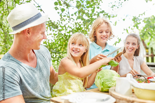 Familie zeigt bunte Zeichnung mit Eigenheim