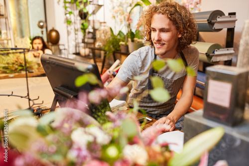 Verkäuferin nimmt am Telefon Bestellung entgegen