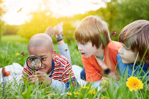 Kinder mit Klemmbrettern auf Schnitzeljagd