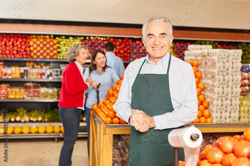Senior als erfolgreicher Verkäufer im Supermarkt