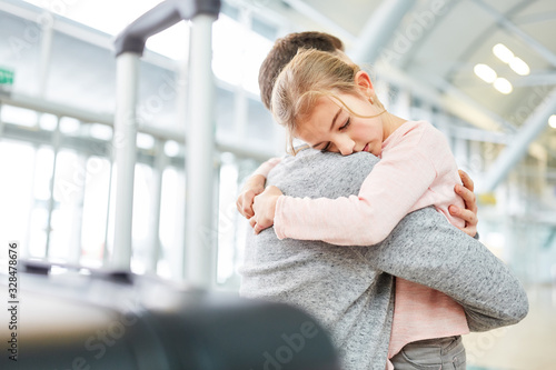 Kleines Mädchen umarmt ihren Vater im Flughafen