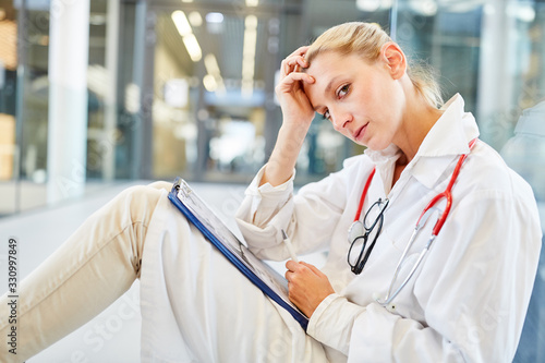Medizin Studentin sitzt nachdenklich in Prüfung