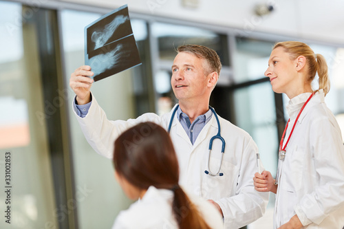 Ärzteteam im Treppenhaus einer Uni Klinik