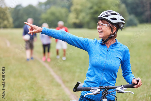 Seniorin auf ihrem Rad bei einer Radwanderung
