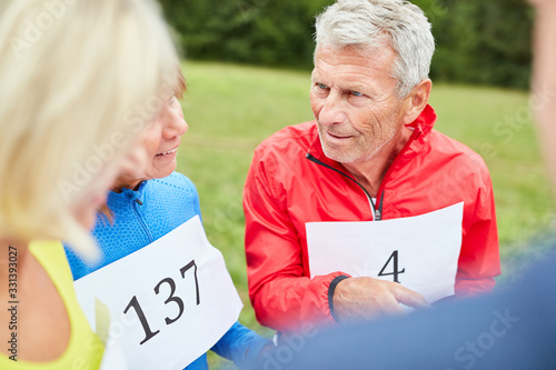 Gruppe Senioren bei Schnitzeljagd als Geländespiel