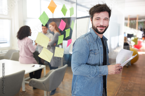 Fröhlicher Start-Up Existenzgründer mit Papieren