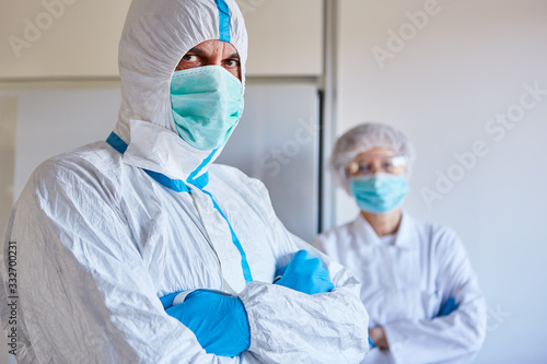 Arzt und Pfleger in Klinik mit Schutzkleidung wegen Coronavirus