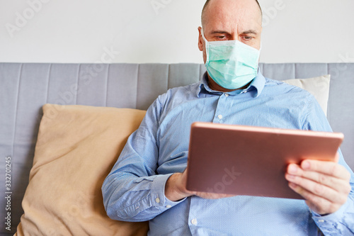 Covid-19 Patient in Quarantäne mit Tablet Computer