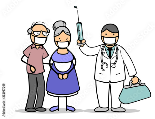Senioren mit Mundschutz bekommen Covid-19 Impfung