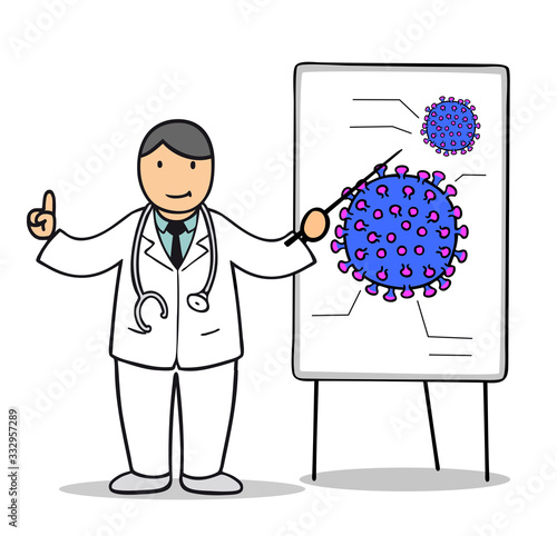 Arzt macht Aufklärung über Coronavirus auf Infografik