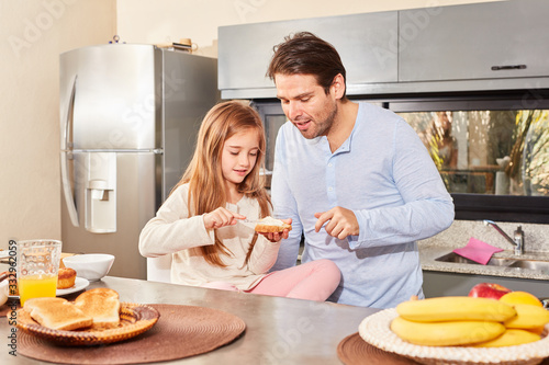 Vater und Kinder beim Frühstück in der Küche