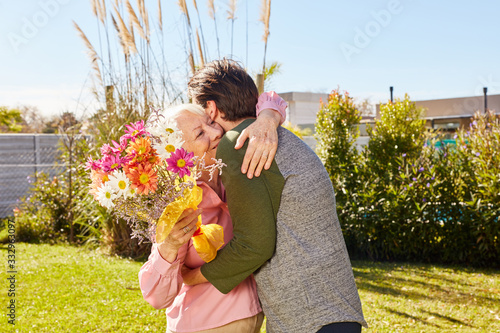 Mutter bedankt sich bei Sohn für den Blumenstrauß